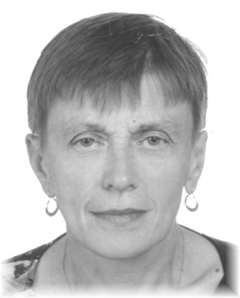 Ubrana była najprawdopodobniej w płaszcz kremowy do kolan, spodnie dresowe koloru szarego, półbuty skórzane koloru czarnego.