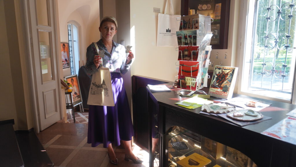 Od niedawna na stoisku tym można znaleźć także różnego rodzaju suweniry z Mielca w postaci tak popularnych ostatnio magnesów oraz np. breloczki, kubki, płócienne torby itp. Nowością są eksponaty, które powstały podczas warsztatów ceramicznych, które na początku lipca zorganizowano na terenie parku przy Pałacyku Oborskich.