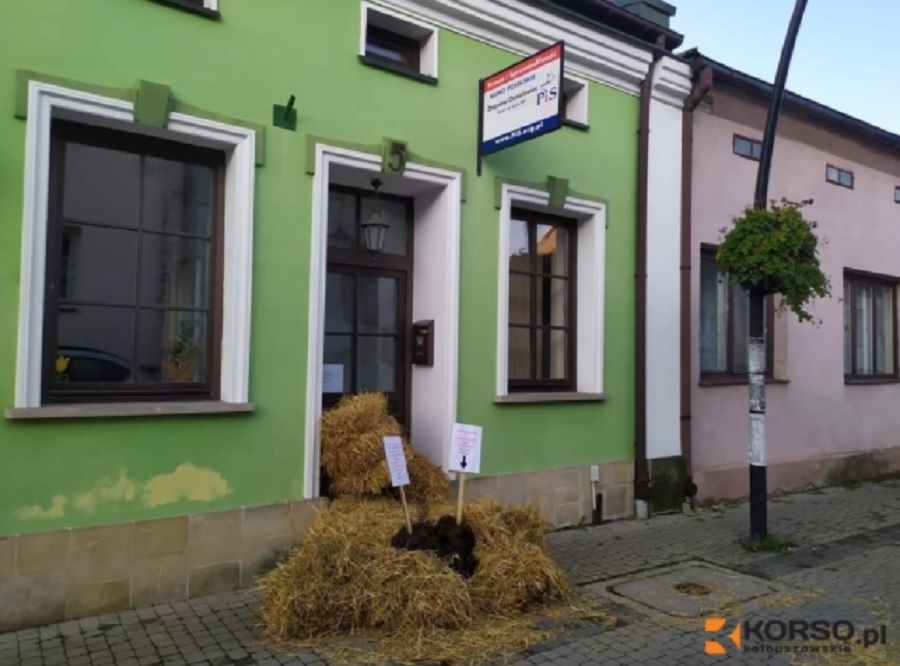 Kupa łajna przed biurem poselskim w Kolbuszowej [FOTO] [VIDEO]