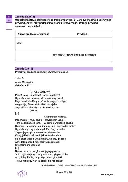 Choć oficjalne wyniki matury z języka polskiego poznamy dopiero po zakończeniu całego cyklu matur, wiele osób zadaje pytania, co dokładnie znalazło się w arkuszu.Maturzyści musieli analizować fragmenty lektur, takie jak „Tango” Sławomira Mrożka, „Wesele” Stanisława Wyspiańskiego, „Dziady” Adama Mickiewicza, „Rozmowa Mistrza Polikarpa ze Śmiercią” oraz „Rok 1984” George’a Orwella.