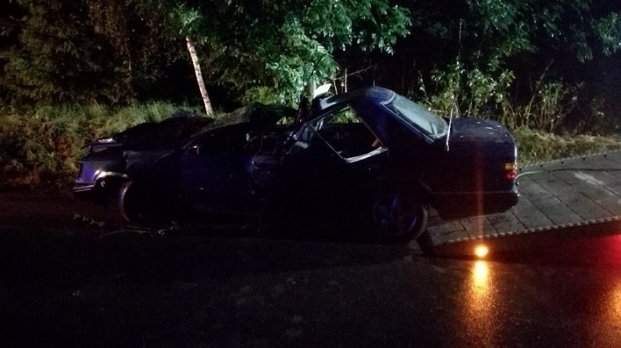 Kierowca osobowego mercedesa na łuku drogi wpadł w poślizg, zjechał do rowu, a następnie dachował. Pojazdem podróżowało pieć osób. Kierujący i jeden pasażer trafili do szpitala. Kierowca pojazdu był trzeźwy.