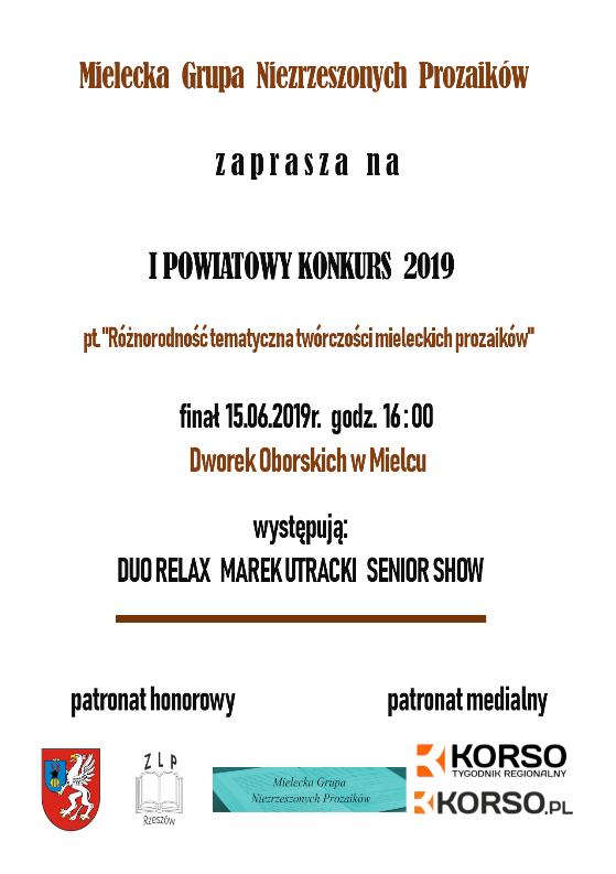 Mielecka Grupa Niezrzeszonych Prozaików zaprasza na I Powiatowy konkurs 2019 pt. "Różnorodność tematyczna twórczości mieleckich prozaików".