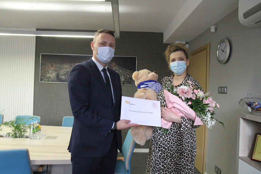 Podobnie jak w ubiegłym roku ze względów pandemicznych Prezydent nie mógł odwiedzić nowego mieszkańca naszego miasta na Oddziale Ginekologiczno-Położniczym w mieleckim szpitalu i dlatego spotkanie miało miejsce w Urzędzie Miejskim przy okazji rejestracji urodzin dziecka w Urzędzie Stanu Cywilnego.