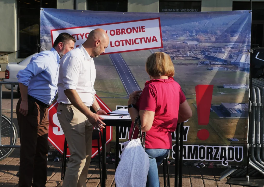 Zbieramy podpisy sprzeciwu wobec sprzedaży miejskiej działki, jednej z ostatnich, jaka ma dostęp do pasa startowego i stanowi własność miasta, która otwiera tak naprawdę dojazd do pasa startowego od strony południowej. Pan Prezydent, zgodnie z planem zagospodarowania, jaki dzisiaj jest, wystawia tę działkę na sprzedaż pod składy, magazyny i produkcję. Uważamy, że ta działka powinna pozostać miejska i powinna rozwijać lotnisko, które również jest nasze - miejskie. Stanowi tak naprawdę jego naturalne zaplecze. Dla nas taka decyzja dzisiaj to tak naprawdę zamknięcie tego terenu dla lotnictwa - mówił Radosław Swół.