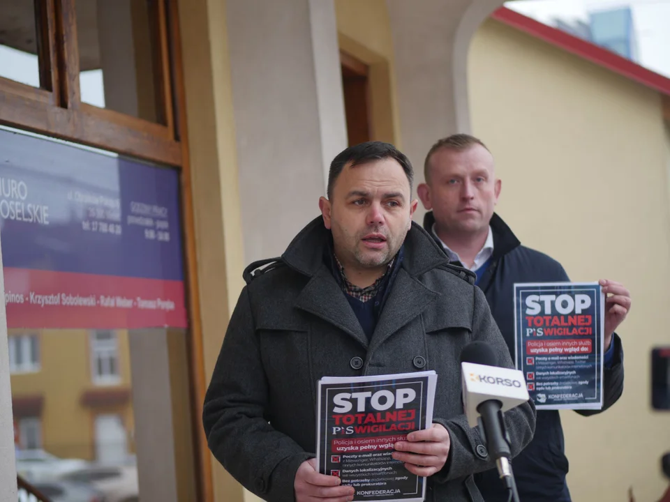 - Tematem konferencji jest projekt ustawy sejmowej, w której PiS i Solidarna Polska próbują zafundować Polakom inwigilację obywateli, jakiej jeszcze nie było! - zaznaczył Tomasz Buczek.