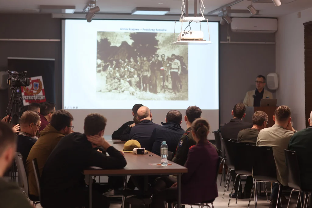 Pierwszym punktem obchodów było spotkanie z prof. Grzegorzem Ostaszem, znanym historykiem i specjalistą w zakresie historii politycznej oraz wojskowej XX wieku. Wydarzenie odbyło się w Sali Wystawienniczo-Konferencyjnej przy Nadleśnictwie Mielec, a jego temat przewodni brzmiał: Okręg Rzeszowski Zrzeszenia „Wolność i Niezawisłość”.