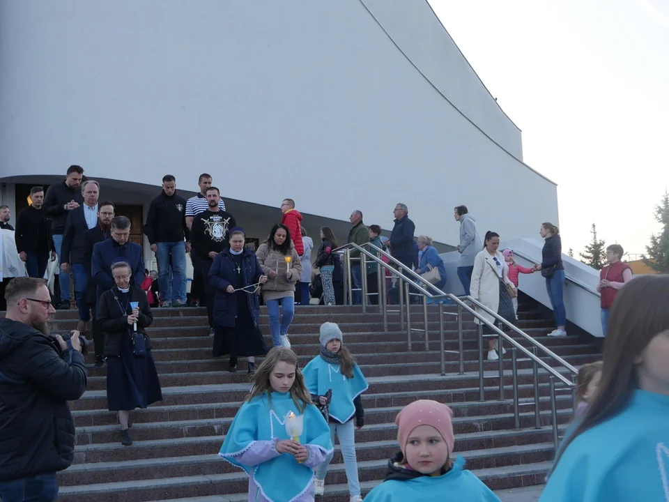 Modlitwa przebłagalna rozpoczęła się uroczystą procesją z kościoła głównego parafii pw. Ducha Świętego, gdzie przez ostatnie dni przeniesiono wszystkie liturgie. Wierni towarzyszyli kapłanom, którzy nieśli Najświętszy Sakrament oraz połamany krzyż – symbol zniszczenia, ale i odkupienia. Krzyż ten, dotknięty aktem wandalizmu, został odnaleziony przed wejściem do kaplicy 1 maja i stał się wymownym znakiem tego wieczoru.