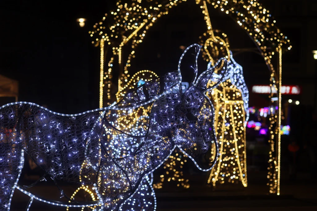 Nie można zapomnieć o ozdobach na latarniach, które pięknie komponują się z resztą dekoracji, podkreślając świąteczny charakter miasta.