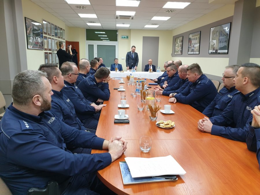 Na zakończenie nadkom. Jacek Juwa podziękował policjantom za pracę w ubiegłym roku oraz zaapelował o dalsze zaangażowanie i przypomniał priorytety, którymi należy kierować się w walce z przestępstwami najbardziej uciążliwymi dla społeczności lokalnej.