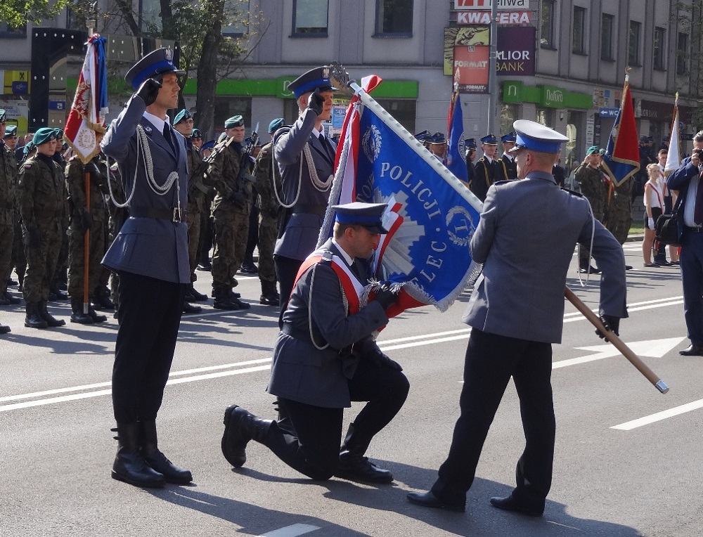 Sztandar na ręce komendanta powiatowego nadkom. Jacka Juwy przekazali zastępca komendanta głównego Policji nadinsp. Andrzej Szymczyk wraz ze starostą mieleckim Zbigniewem Tymułą.