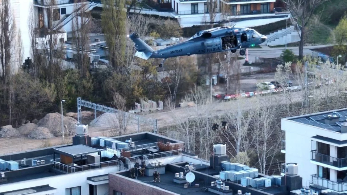 Policyjny Black Hawk był kluczowym elementem wtorkowej akcji. Na nagraniach i zdjęciach widać, jak maszyna utrzymuje stabilny zawis nad jednym z budynków, umożliwiając funkcjonariuszom z elitarnej jednostki BOA zjazd na linach bezpośrednio na dach.