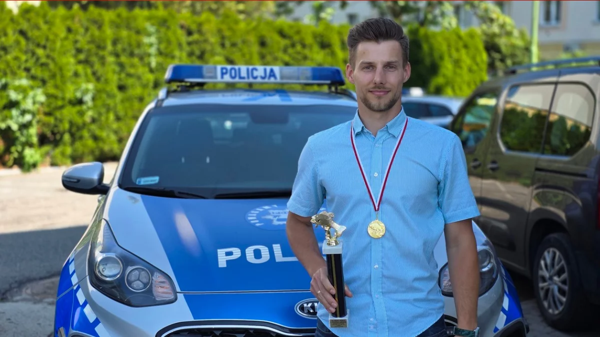 Mł. asp. Rojek udowodnił, że można łączyć wiele ról – policjanta, krwiodawcy i wędkarza – z pasją i sukcesami.