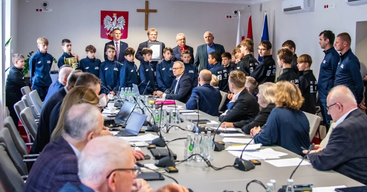 24 listopada 2025 roku Starostwo Powiatowe w Mielcu miało zaszczyt gościć mistrzów Polski w piłce nożnej w kategorii U-13 – chłopców ze Szkoły Podstawowej nr 3 im. Wojska Polskiego w Mielcu. Drużyna, która zdobyła tytuł mistrzów w ogólnopolskim turnieju „Z Orlika na Stadion”, przybyła wraz z dyrektorem szkoły Adamem Jastrzębem oraz opiekunami drużyny Maciejem Kukułką i Jakubem Zaskalskim. To ogromny sukces, który świadczy o doskonałej pracy z młodzieżą i dużym zaangażowaniu całego zespołu.