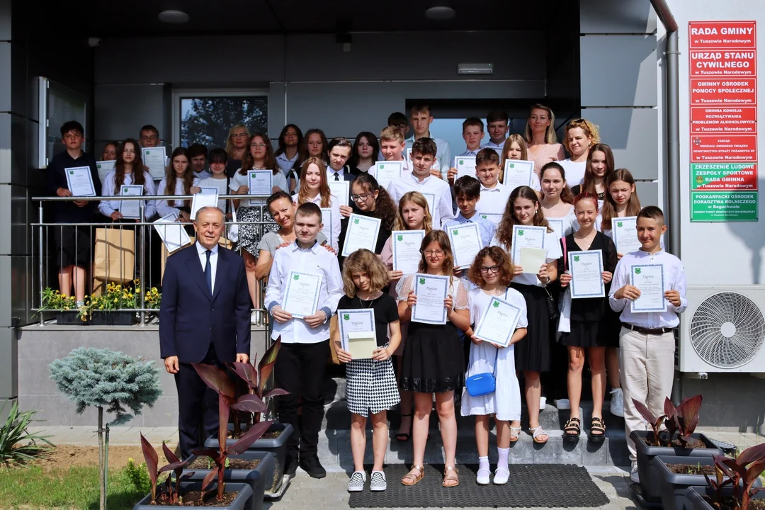 Dodatkowo wójt gminy Tuszów Narodowy ufundował 80 stypendiów naukowych dla wszystkich uczniów z kl. IV – VIII – za średnią ocen co najmniej 5,0 oraz wzorowe zachowanie. Należy nadmienić, że wójt gminy nagradza uczniów stypendiami naukowymi dwa razy w danym roku szkolnym. Tak też w bieżącym roku również za I semestr zostało nagrodzonych 29 uczniów, a na koniec roku szkolnego aż 80 uczniów, jak wyżej wspomniano.