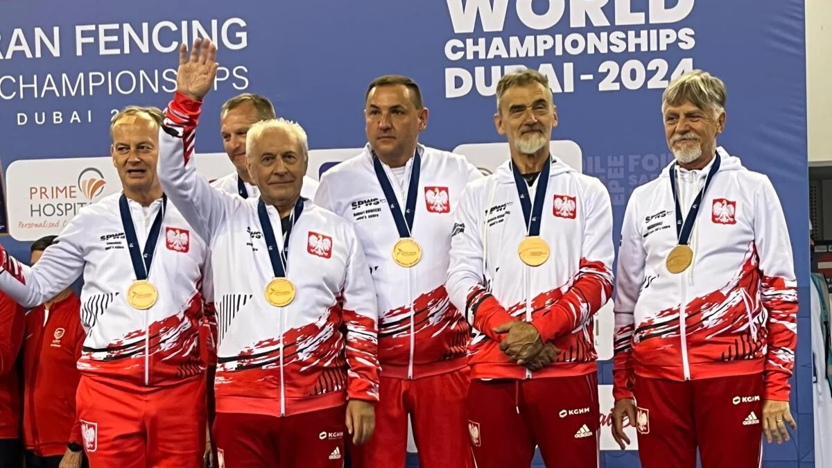Janusz Młynek – Reprezentacja Polski, której byłem członkiem, wywalczyła brązowy medal drużynowy w szabli w Mistrzostwach Świata w Szermierce Weteranów, które odbyły się w Dubaju w dniach 22-28 X 2024 r. Dodam, że to jest pierwszy w historii medal dla Polski w tych mistrzostwach.