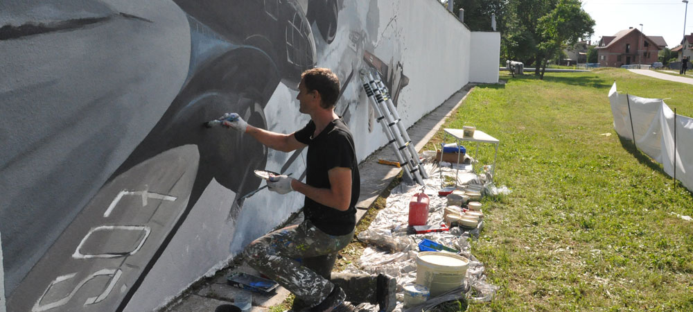 Mieszkańcy osiedla Szafera, z zaciekawieniem podglądają pracę przy powstaniu muralu. Obraz powstaje dzięki inicjatywie Stowarzyszenia „Odrodzony Mielec”. Farby przekazały lokalne firmy. Wszystko odbywa się społecznie. Jak udało się nam dowiedzieć, lotniczy mural to odpowiedź na prośby mieszkańców, żeby promować lotnicza historię Mielca, a także pokazać najistotniejsze zmiany, które na przestrzeni lat zaistniały w naszym mieście. Stowarzyszenie przygotowuje już kolejnym mural, który będzie przedstawiać prof. Władysława Szafera.