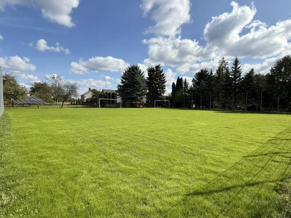 Następnie wysiano nowy trawnik i zamontowano nowoczesny system nawodnienia z wykorzystaniem węży oraz przenośnych zraszaczy pulsacyjnych. Prace zakończono nawożeniem i pielęgnacją murawy, co zapewni jej szybkie ukorzenienie i trwały efekt estetyczny.