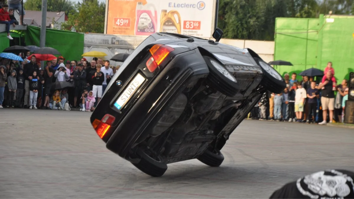 Mimo zmiennej pogody i nadejścia deszczu nie zniechęciło to osób, które z zachwytem oglądały niesamowite kaskaderskie jazdy.