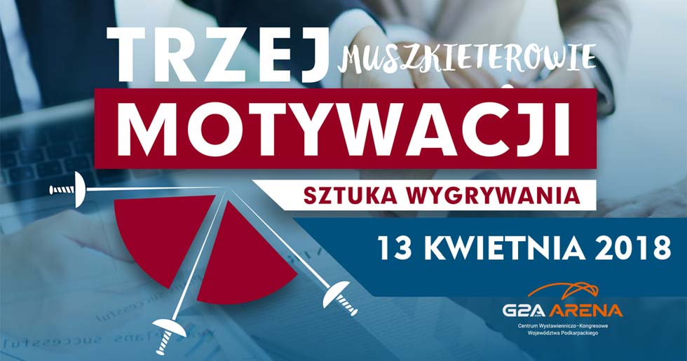 13 kwietnia w G2A Arena Centrum Wystawienniczo-Kongresowym Województwa Podkarpackiego w Jasionce odbędzie się już druga edycja cyklu konferencji „Trzej Muszkieterowie”. Tym razem zaproszeni prelegenci będą uczyć skutecznych, bo od lat stosowanych w sporcie, technik motywacji.