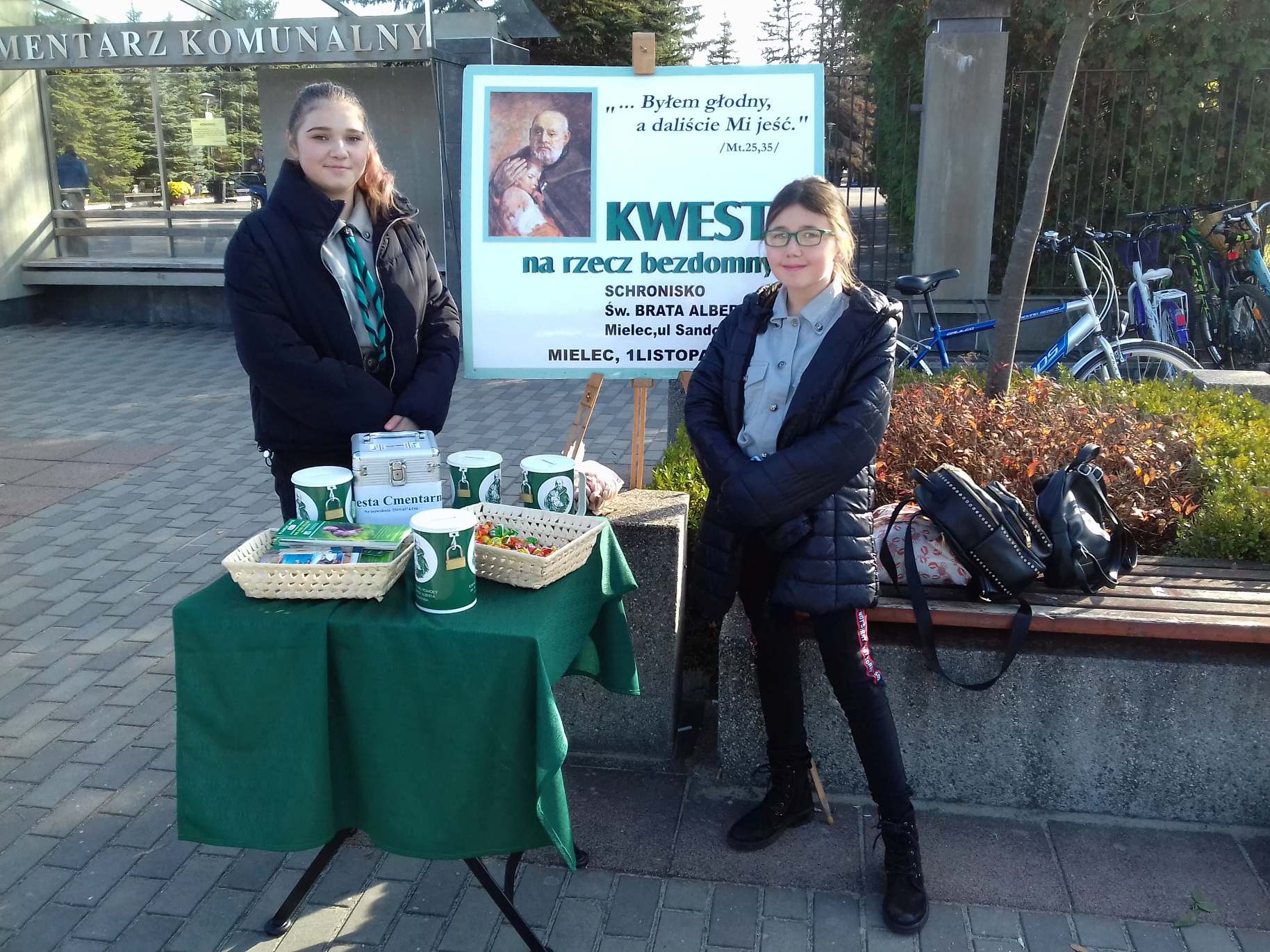 Harcerze kwestują przy dwóch głównych bramach cmentarza komunalnego, oraz przy bramie głównej od strony pomnika na cmentarzu parafialnym.
