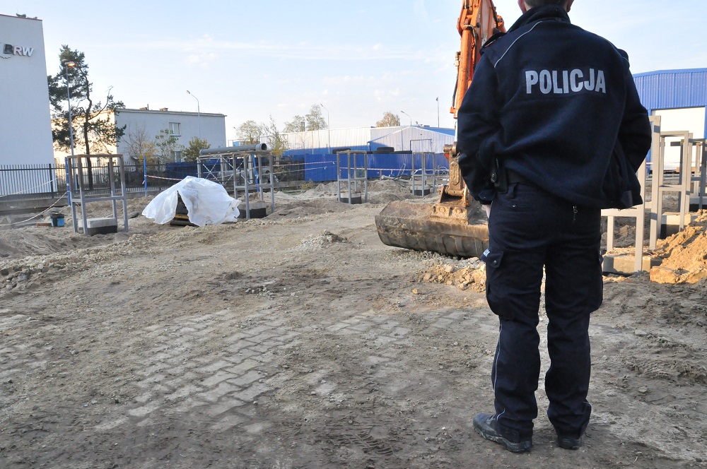 Przybyli na miejsce policjanci zabezpieczyli miejsce i czekają na saperów, którzy mają zająć niebezpiecznymi znaleziskiem.