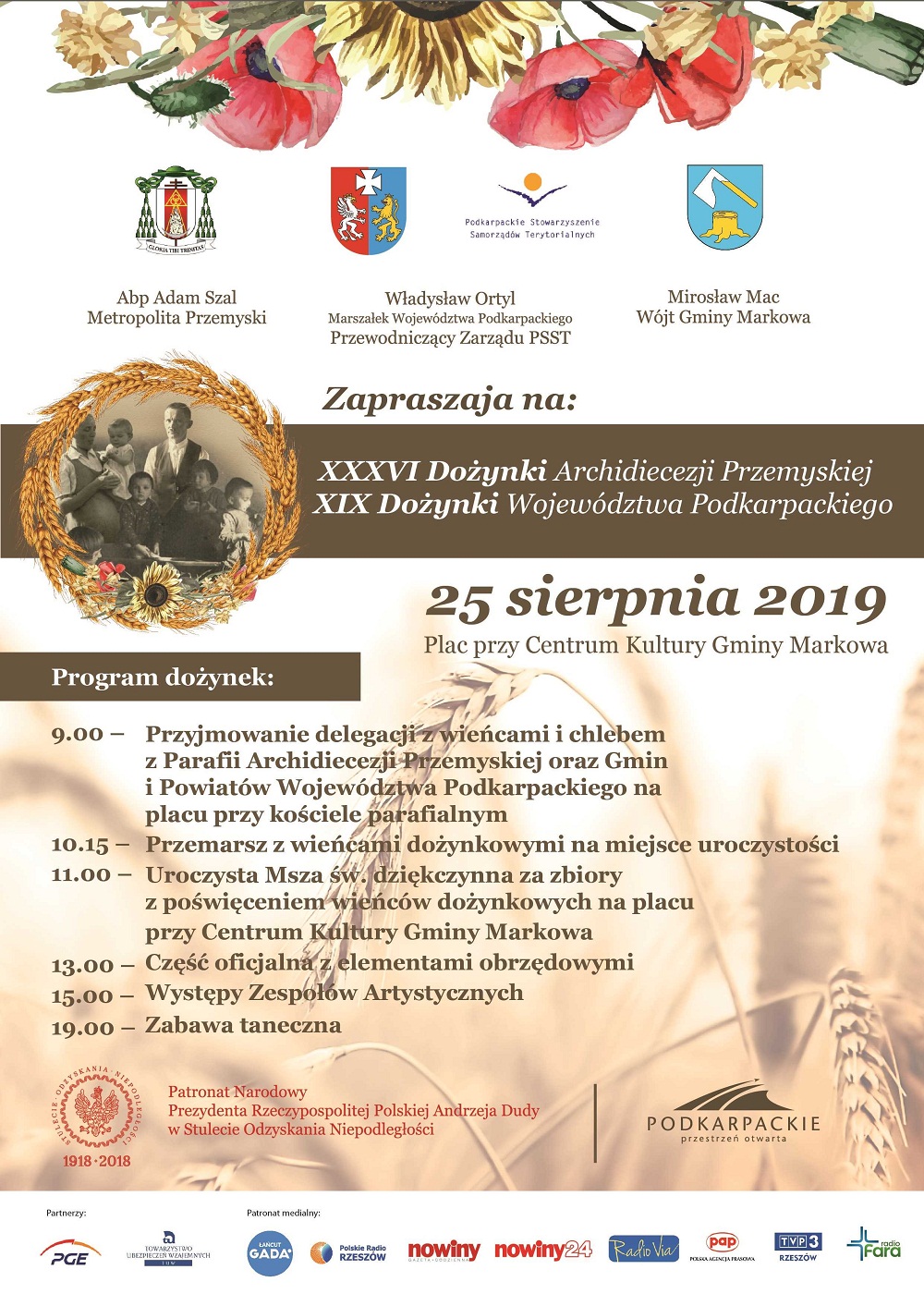 Będą to jednocześnie dożynkami Archidiecezji Przemyskiej. Gościem będzie Sekretarz Stanu w Kancelarii Prezydenta RP Adam Kwiatkowski.