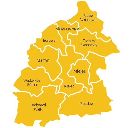 W pierwszej dziesiątce województwa znajdują się jeszcze 3 gminy naszego powiatu, kolejno na miejscu szóstym, siódmym i ósmym - gmina Mielec, Wadowice Górne, Czermin. W kolejnej dwudziestce jest jeszcze Radomyśl Wielki i Tuszów Narodowy.