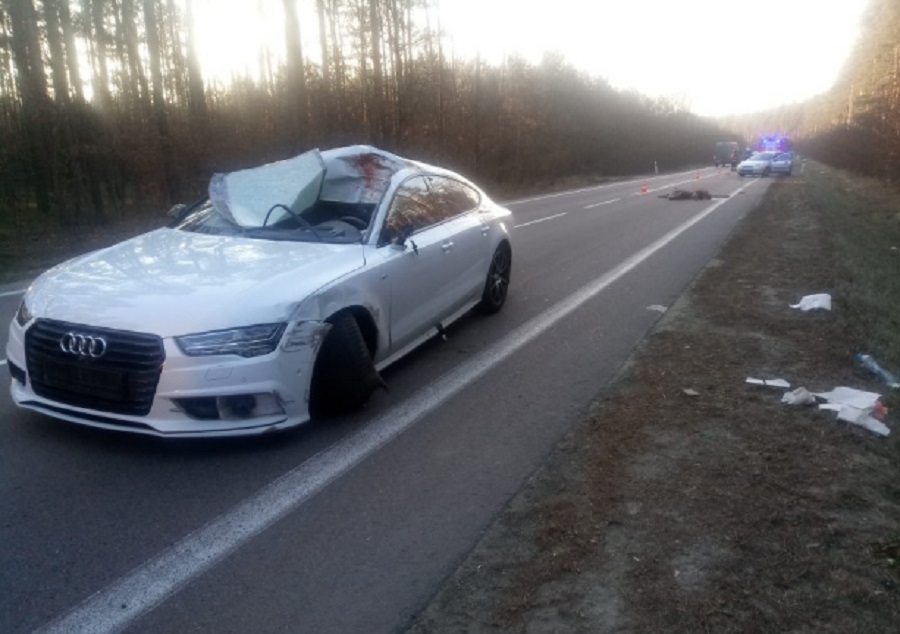 Niestety kierowca audi nie zdołał uniknąć zderzenia ze zwierzęciem, które uderzyło w pojazd i zginęło na miejscu.