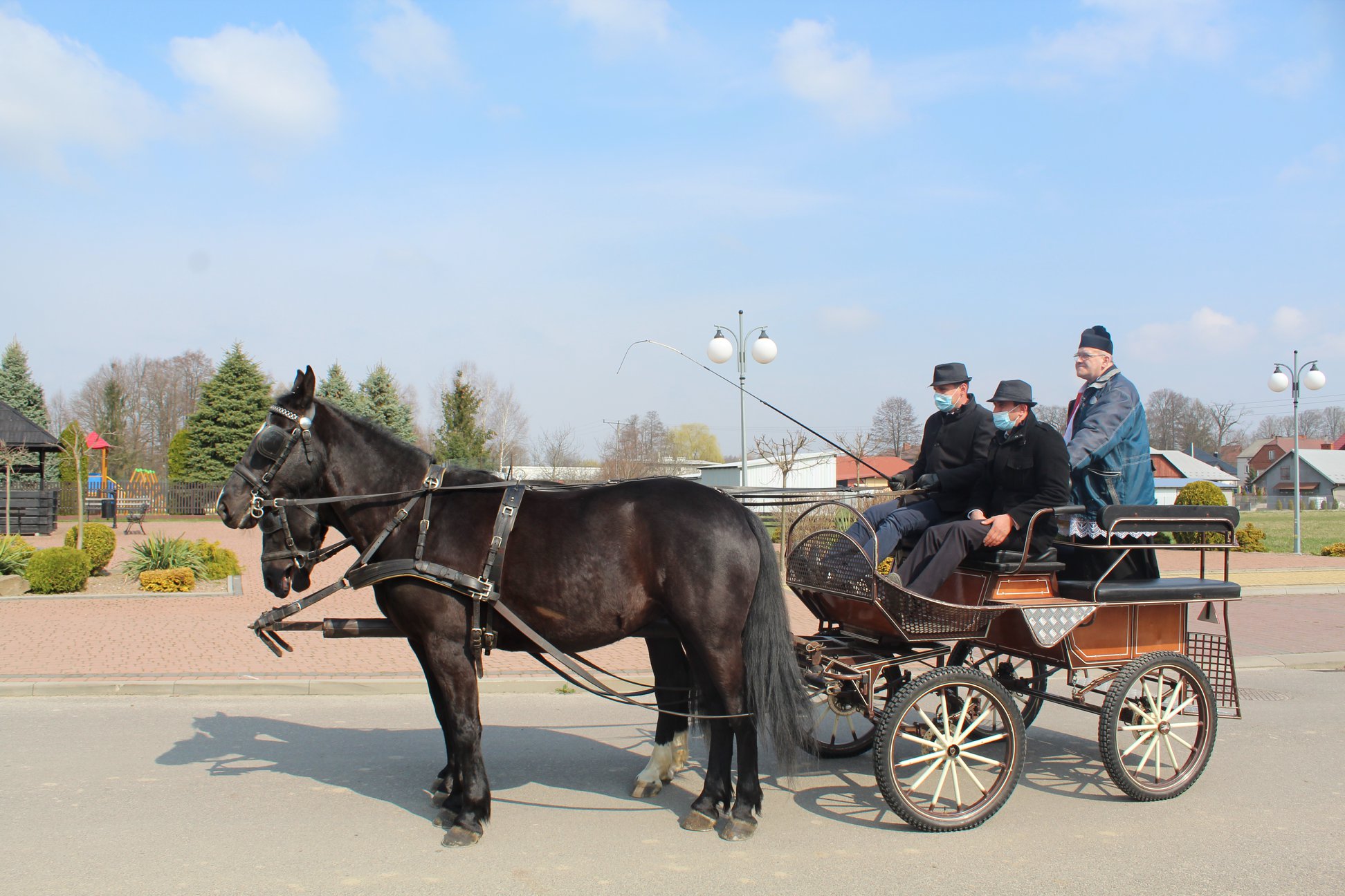 Po odmówionej w kościele modlitwie, ksiądz proboszcz udał się na bryczce ciągniętej przez konie na objazd parafii. Wierni ustawili się ze święconką przed swoimi domami.