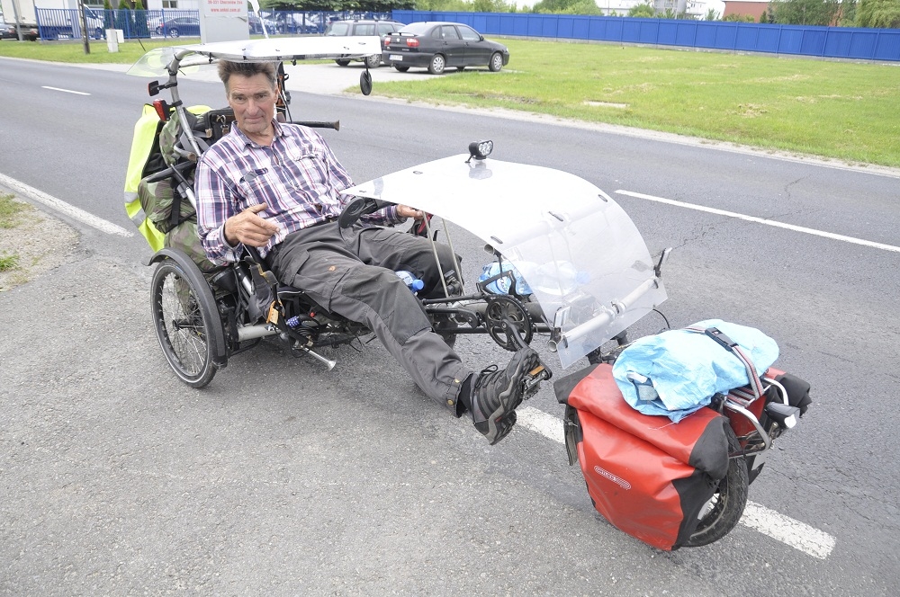 Stwierdził, że jego pojazd jest bardzo wygodny, bo niemal na nim leży, ze względu na chory kręgosłup. Fin zamierza przejechać całą Polskę, dotrzeć do krainy Jezior Mazurskich i stamtąd udać się do ojczyzny.