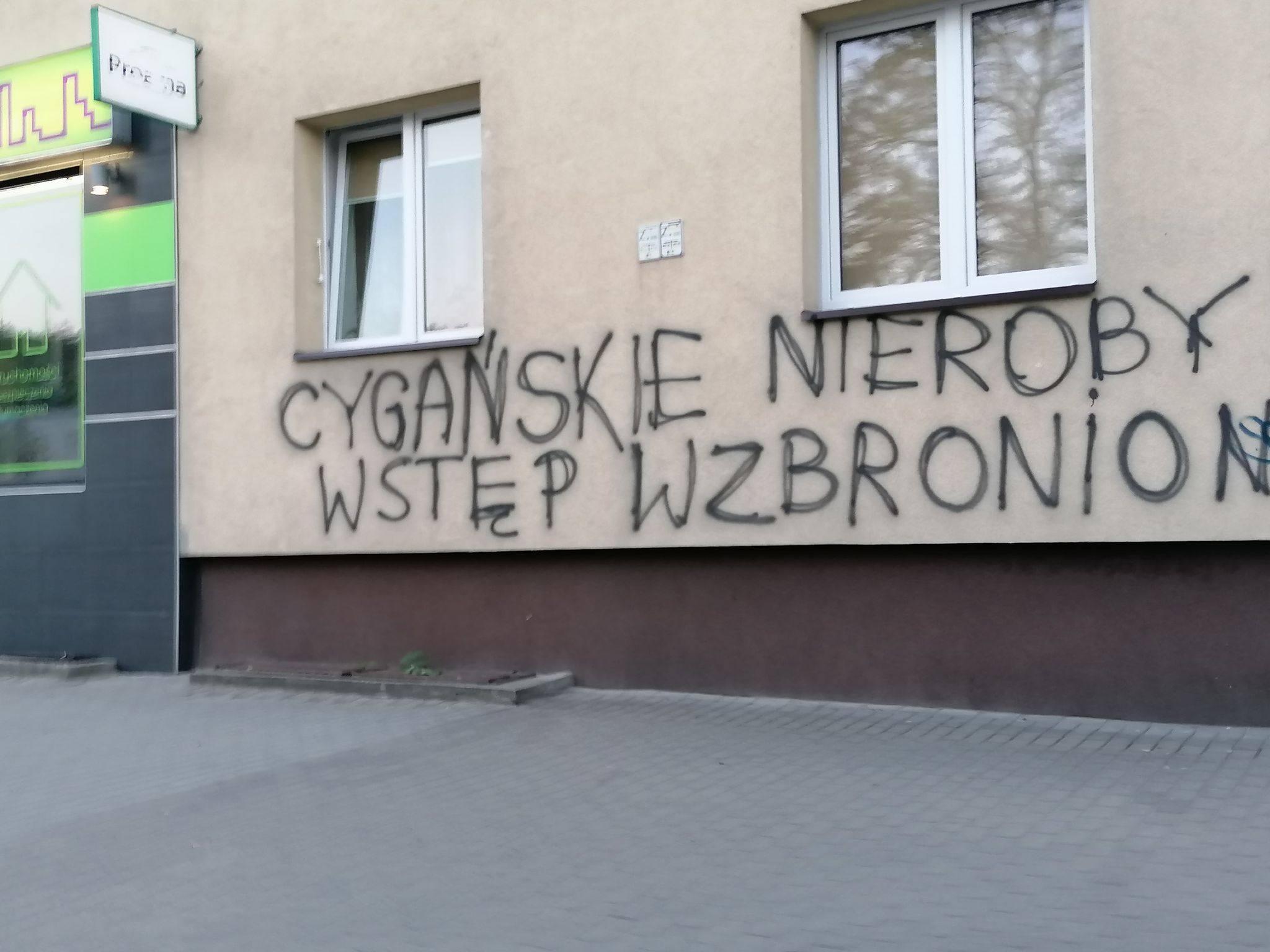 "Cygańskie nieroby wstęp wzbroniony" i "ciawa out" napisał farbą na ścianach budynków w Mielcu przy ulicy Biernackiego nieznany sprawca lub sprawcy. Ich ustaleniem zajmie się teraz policja.