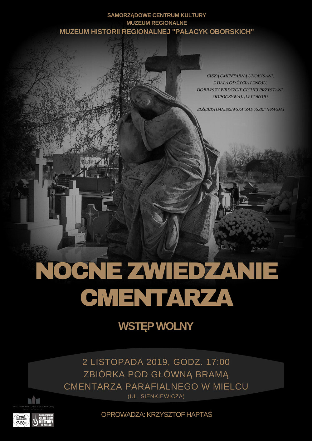 Wszystkich zainteresowanych wyjątkowym, klimatycznym zaduszkowym zwiedzaniem i poznaniem niezwykle interesujących historii tzw. cmentarza parafialnego i pochowanych na nim zmarłych zapraszamy na wspólne spotkanie i spacer rozświetlonymi światłami zniczy alejkami.