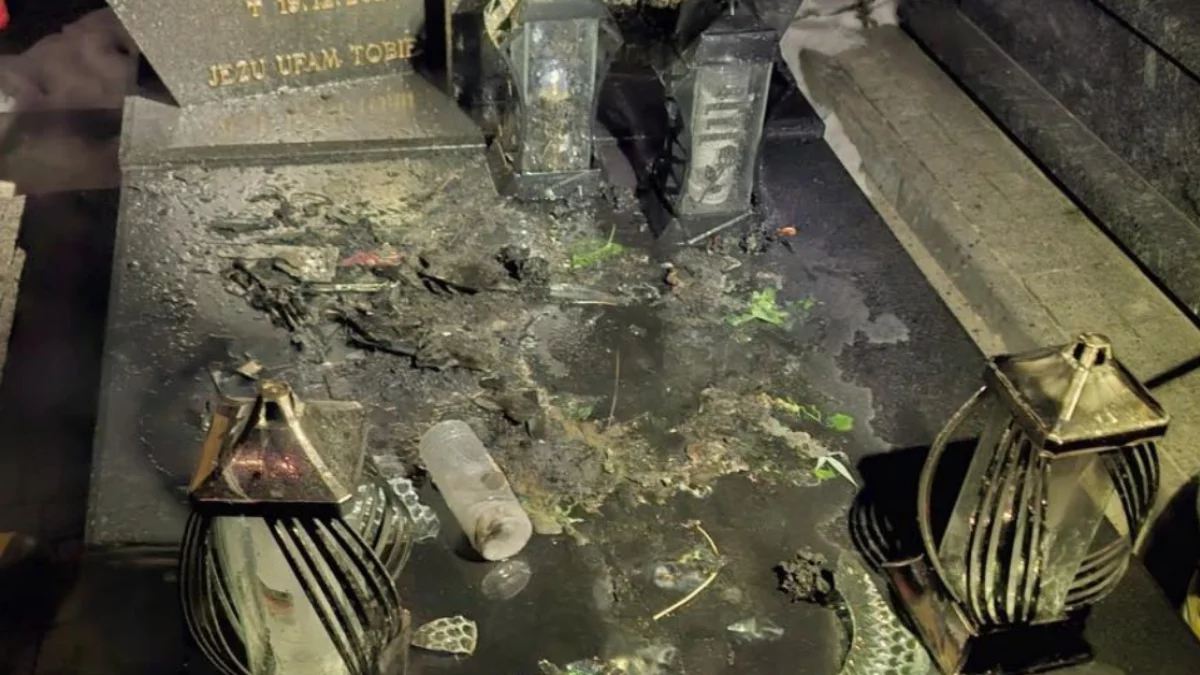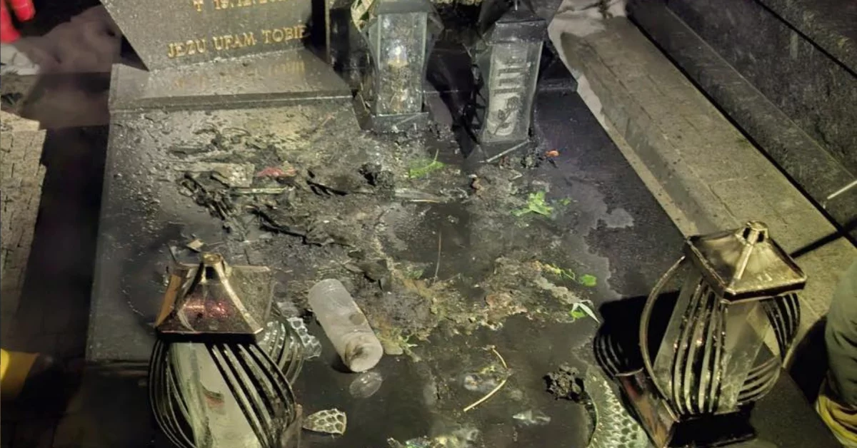 Ogień bardzo szybko objął wszystkie elementy dekoracyjne znajdujące się na płycie. W wyniku pożaru ozdoby i znicze uległy całkowitemu spaleniu. Na szczęście ogień nie rozprzestrzenił się na sąsiednie groby.