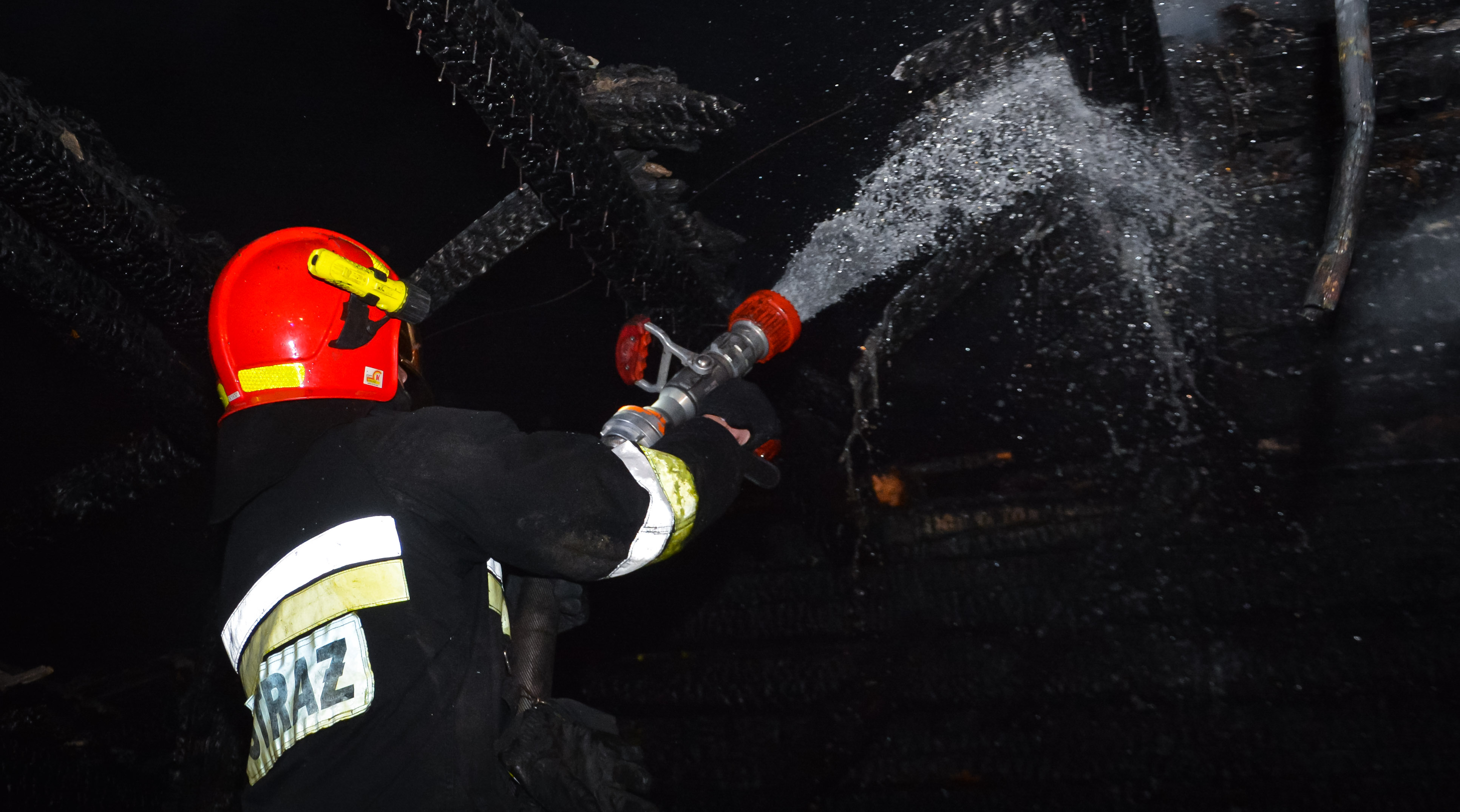 W chwili przybycia straży pożarnej na miejsce, cały budynek był objęty pożarem. Strażacy podali środek gaśniczy na palący się budynek, a prowadzone działania wymagały rozebrania części konstrukcji w celu dokładnego dogaszania pustostanu.