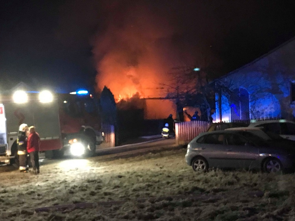 Nocny pożar w Plutach (gm. Tuszów Narodowy)