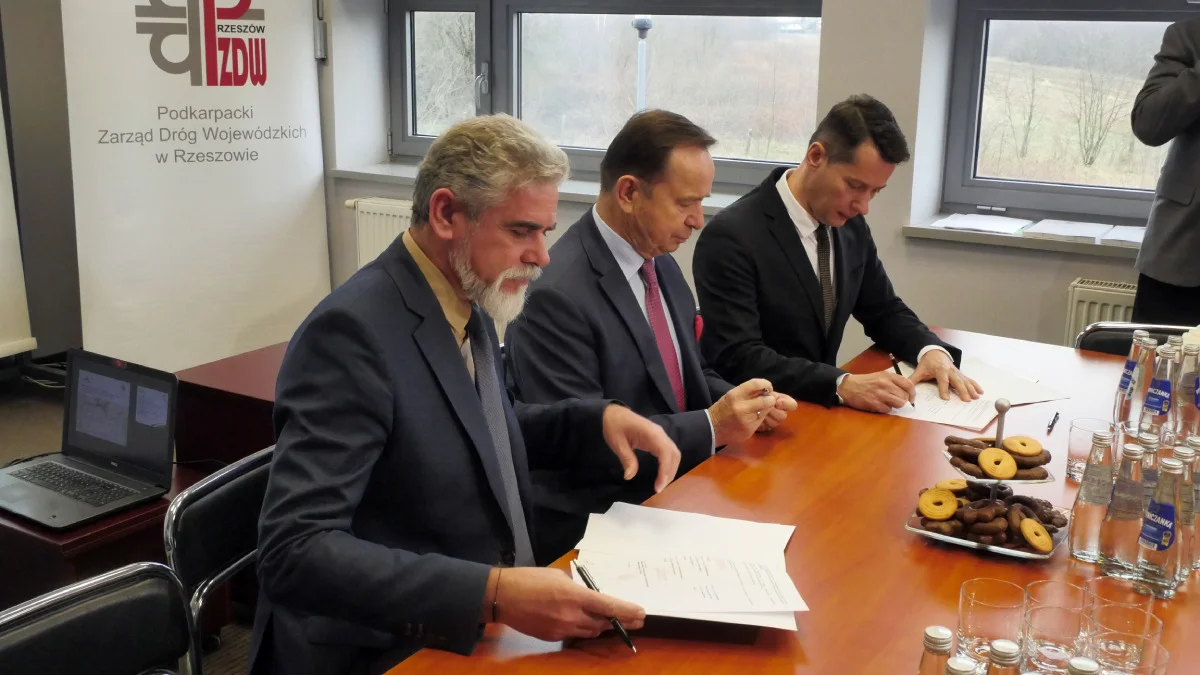W dniu 11 marca 2024 roku Marszałek Władysław Ortyl, Dyrektor Podkarpackiego Zarządu Dróg Wojewódzkich w Rzeszowie Piotr Miąso oraz Prezes Piotr Jarosz z Przedsiębiorstwa Drogowo-Mostowego S.A. z siedzibą w Dębicy podpisali umowę na realizację prac projektowych i robót budowlanych, której wartość wynosi 54 410 591,40 PLN.