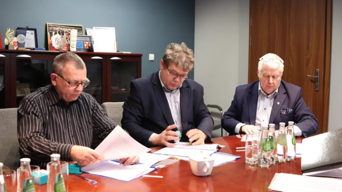 Podczas podpisania umowy obecni byli: Starosta Powiatu Mieleckiego Kazimierz Gacek, Członek Zarządu Powiatu Mieleckiego Zbigniew Działowski oraz Dyrektor Powiatowego Zarządu Dróg w Mielcu Jacek Krzyżewski.