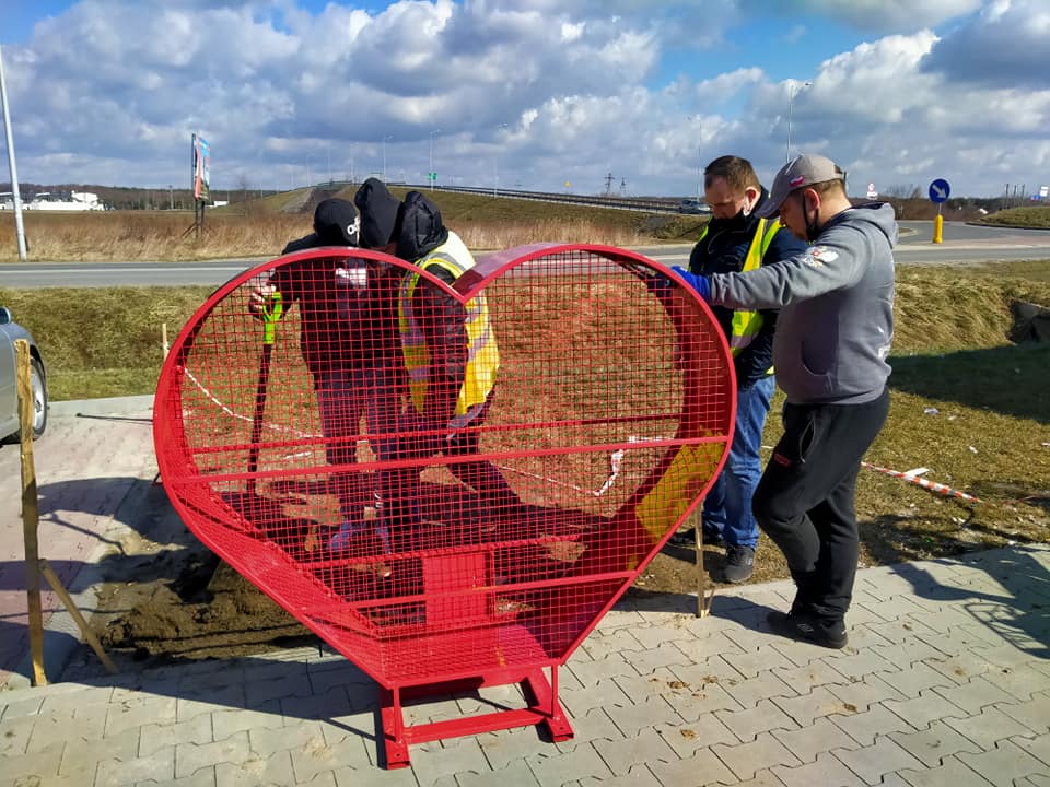 Niedawno takie "nakrętkowe serce" stanęło też obok Miejskiej Biblioteki Publicznej w centrum Mielca.
