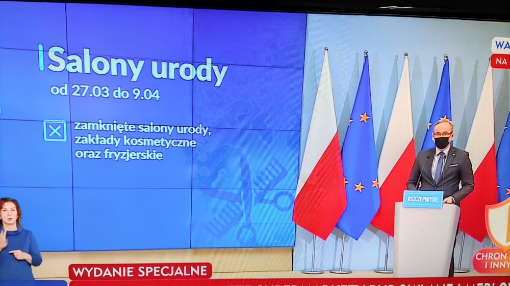 Od 27 marca zakaz działalności obejmie także salony fryzjerskie, urody i kosmetyczne w całej Polsce.