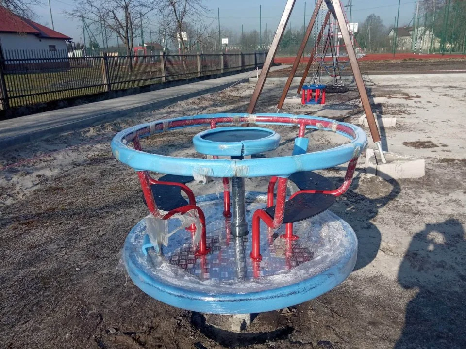 Panujące warunki atmosferyczne uniemożliwiają nawiezienie ziemi, stąd planowany termin oddania placu zabaw do dyspozycji mieszkańców, został przesunięty na wiosnę.