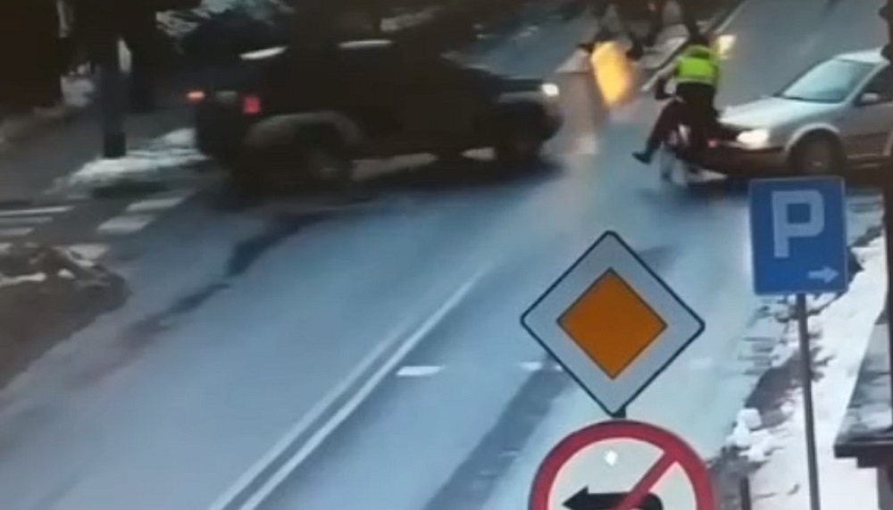 Do zdarzenia doszło w piątek na skrzyżowaniu w Ustrzykach Dolnych. Rowerzysta jadący od strony rynku zignorował czerwone światło na sygnalizatorze i wjechał na skrzyżowanie, niemal wprost pod koła jadącego pojazdu. Na szczęście nie doszło do tragedii. Mężczyzna upadł na jezdnię.
