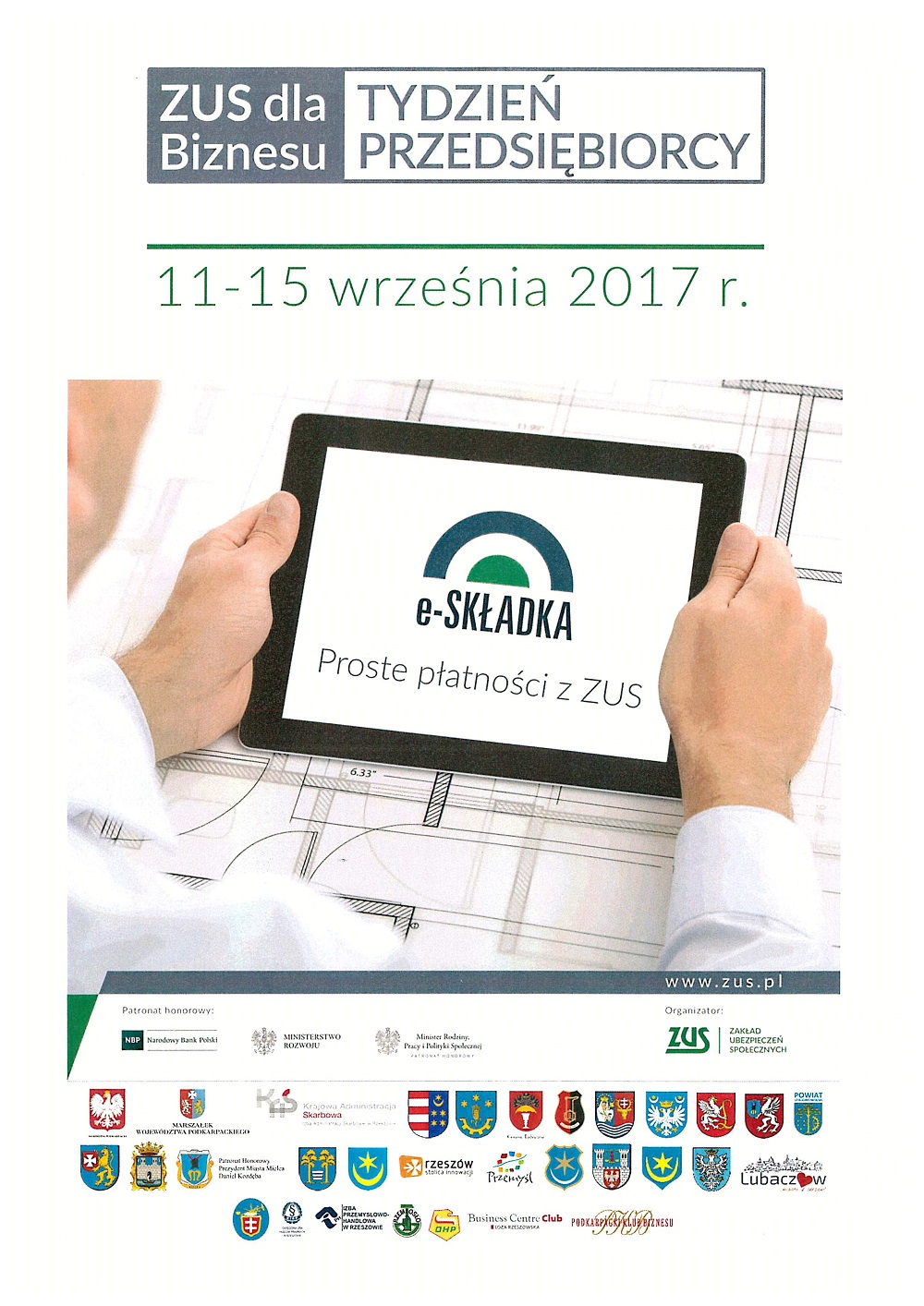 Tegoroczne przedsięwzięcie odbywa się pod hasłem „e-Składka - proste płatności z ZUS” nawiązując do wdrażanego od 1 stycznia 2018 r. ułatwienia dla płatników składek czyli e-Składki. W jednym miejscu ZUS udostępnia możliwość uzyskania wszelkich informacji związanych z nowym sposobem opłacania składek, prowadzeniem działalności gospodarczej, a także skorzystania z: