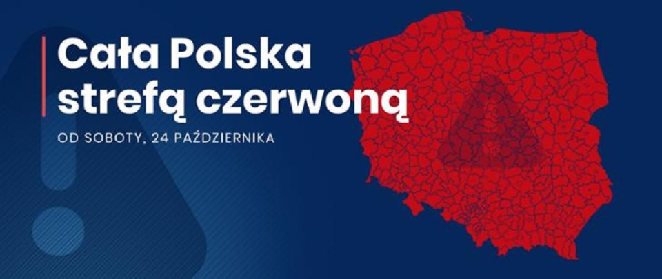 Wraz z umieszczeniem całej Polski w strefie czerwonej zaczyna w niej obowiązywać nowa lista obostrzeń. Poniżej pełna lista tych obostrzeń.