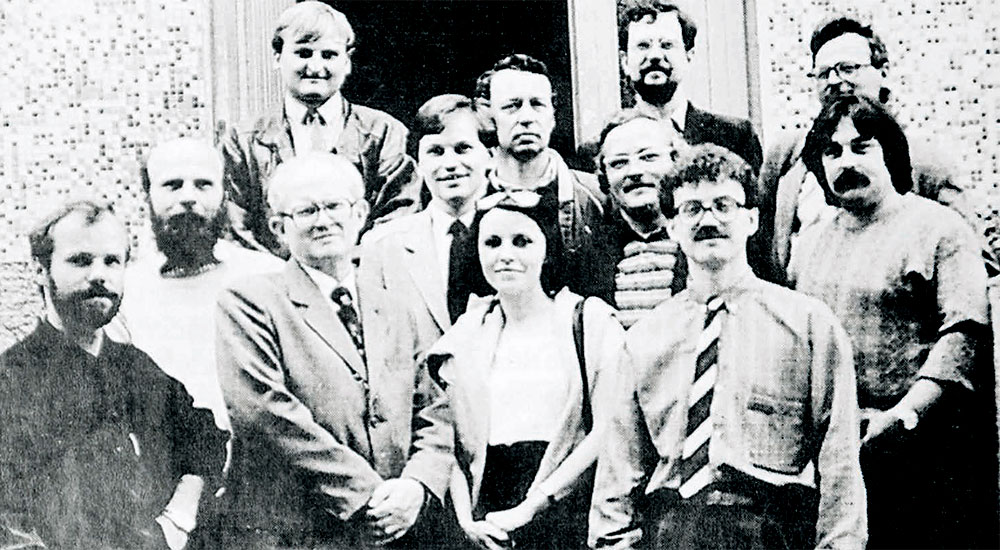 Na zdjęciu założyciele Agencji Wydawniczo-Reklamowej Korso. I rząd (od lewej): Krzysztof Szczurek, Mirosław Maciąga, Teresa Lechocińska-Ciupa, Wiesław Skotarek. II rząd: Marek Kawiorski, Bogdan Rojkowicz, Janusz Czajowski, Edward Michocki. III rząd: Wacław Miraś, Stanisław Słonina, Stanisław Wanatowicz i Włodzimierz Gąsiewski. 1991 rok.