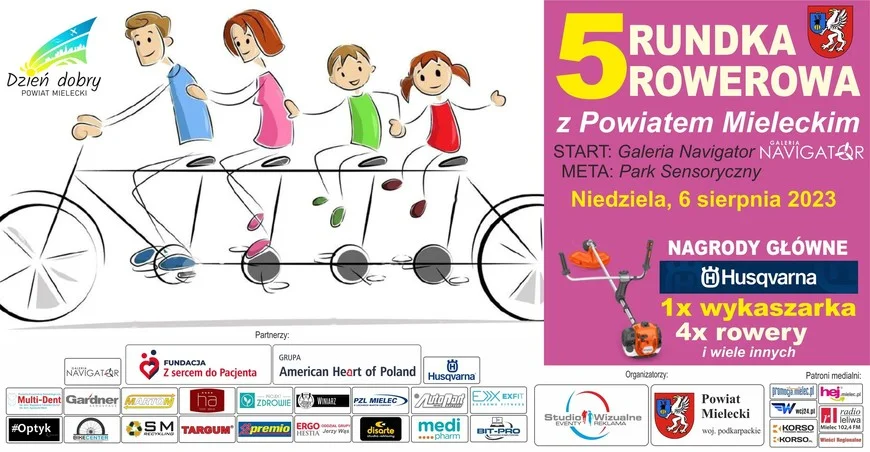 Pierwsze 300 osób zapisanych na rundkę weźmie udział w losowaniu cennych nagród. A będą to między innymi wykaszarka, rowery, smartwatche, power banki, akcesoria rowerowe, vouchery i wiele innych. Losowanie nagród planowane jest ok. godziny 16:15 w Parku Sensorycznym przy ul. Sękowskiego w Mielcu.