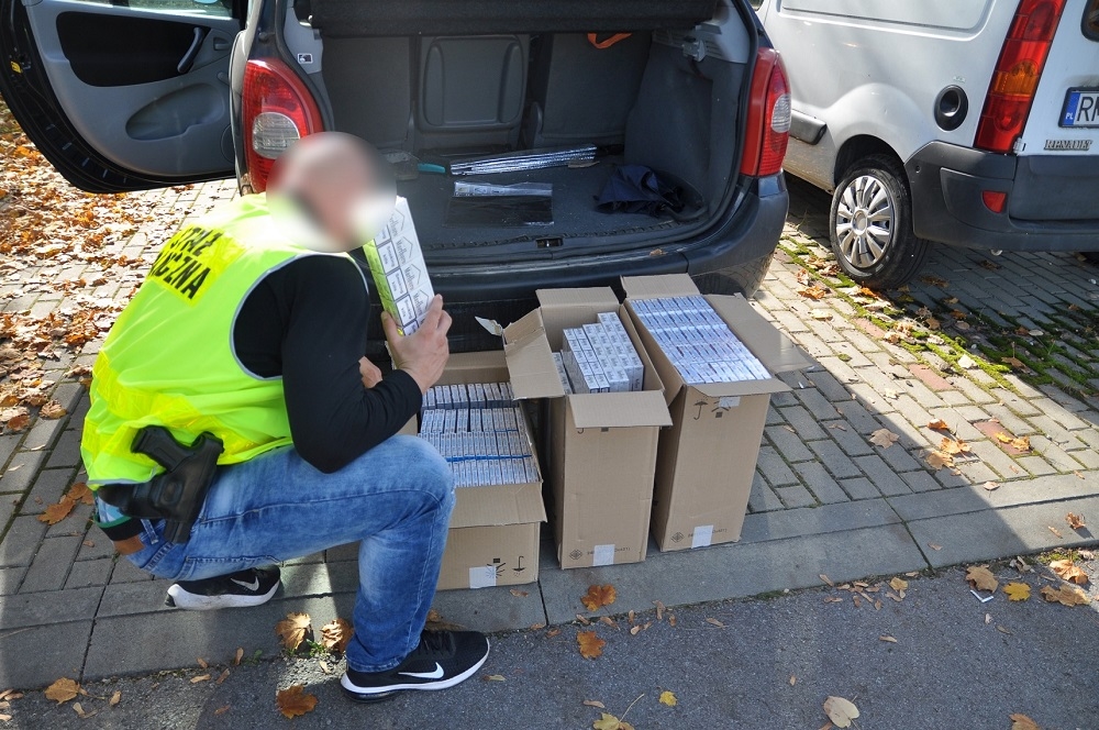 W trakcie kontroli zatrzymano samochód marki volvo w którym dwóch mieszkańców naszego miasta przewoziło znaczne ilości papierosów bez polskich znaków akcyzy. Funkcjonariusze mając podejrzenia, iż papierosy mogą być również składowane na posesji udali się do miejsca zamieszkania obu mężczyzn. Po przeszukaniu budynków mieszkalnych, garaży i zaparkowanego tam pojazdu ujawniono łącznie 13,5 tys. paczek papierosów bez polskich znaków akcyzy.