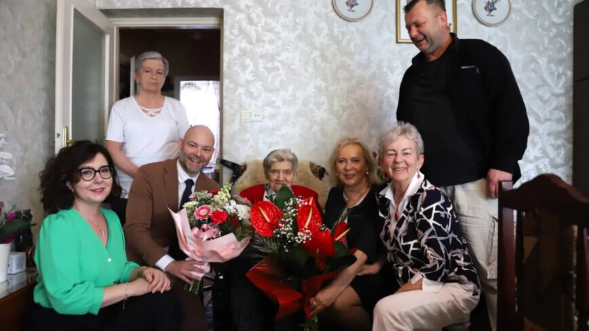 Setne urodziny były okazją do złożenia Jubilatce serdecznych życzeń przez Prezydenta Radosław Swół nie krył podziwu dla bogatej historii życia pani Wandy.