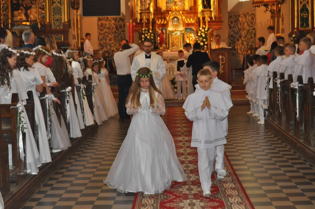 Łącznie w gminie Przecław do komunii przystąpiło 78 dzieci. Mimo nieba zasnutego od rana ciemnymi chmurami, dla dzieci zaświeciło piękne słońce.