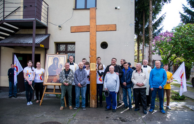Po hucznym rozpoczęciu peregrynacji w okręgu limanowskim Krzyż Młodych i Ikonę Matki Bożej Salus Populi Romani przejęli diecezjalni wolontariusze, którzy w ciągu jednej doby przebyli z symbolami setki kilometrów, by zanieść je do chorych w szpitalu, skazanych w więzieniu, bezdomnych czy spragnionych. Na trasie uczynków miłosierdzia znalazło się również Schronisko św. Brata Alberta w Mielcu. Młodzi opiekunowie krzyża i ikony wraz z mężczyznami ze schroniska odmówili wspólnie Koronkę do Miłosierdzia Bożego. Każdy z obecnych miał możliwość dotknąć i ucałować krzyż, który przez ponad 30 lat wędrował po całym świecie. – W Mielcu spotkaliśmy nietypowych ludzi. Widać było, jak mocno łączyło ich to miejsce. Tego dnia, prócz pokarmu dla ciała, właśnie w Schronisku św. Alberta dostali również wyjątkowy pokarm dla ducha. Na ich twarzach można było zauważyć różne emocje – od zakłopotania, przez wzruszenie, po radość. Każdy z nich na swój sposób przeżywał tę peregrynację – mówi o spotkaniu Ania, diecezjalna animatorka młodzieży. To nie ostatni raz, kiedy oryginalne symbole Światowych Dni Młodzieży odwiedziły Mielec. Peregrynacja w okręgu mieleckim odbyła się w dniach 9-10 maja.