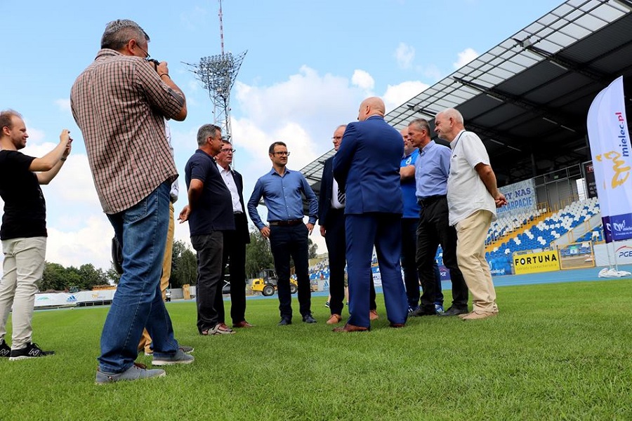 Inwestycją zajmuje się firma Dropservice z Warszawy a koszt prac w postępowaniu przetargowym ustalono na kwotę 1 992 600 zł. Termin zakończenia wszystkich robót to 24 października. Teraz wykonawca miał zrealizować pierwszy etap, czyli roboty związane z instalacją pod boiskiem i ułożeniem nowej murawy.